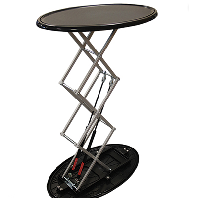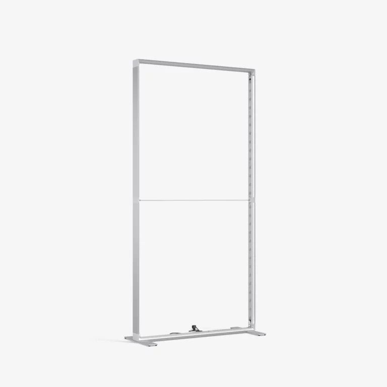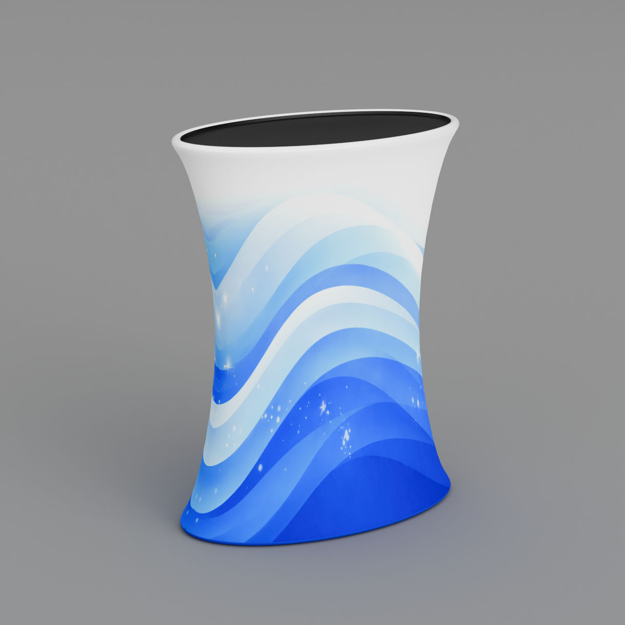Dank des pneumatischen Mechanismus ist der Aufbau des Standes kinderleicht. Heben Sie einfach die Tischplatte leicht an, und die Konstruktion entfaltet sich automatisch und spannt den Textildruck. Der Stand ist in Sekundenschnelle aufgebaut – besonders praktisch bei dynamischen Veranstaltungen.